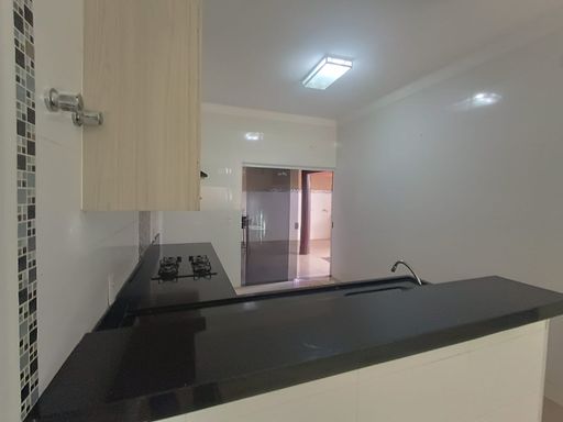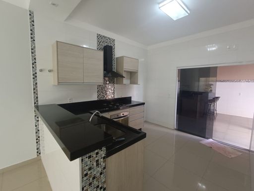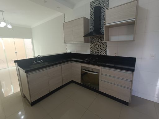 - Cozinha com armário, forno a gás, cooktop.